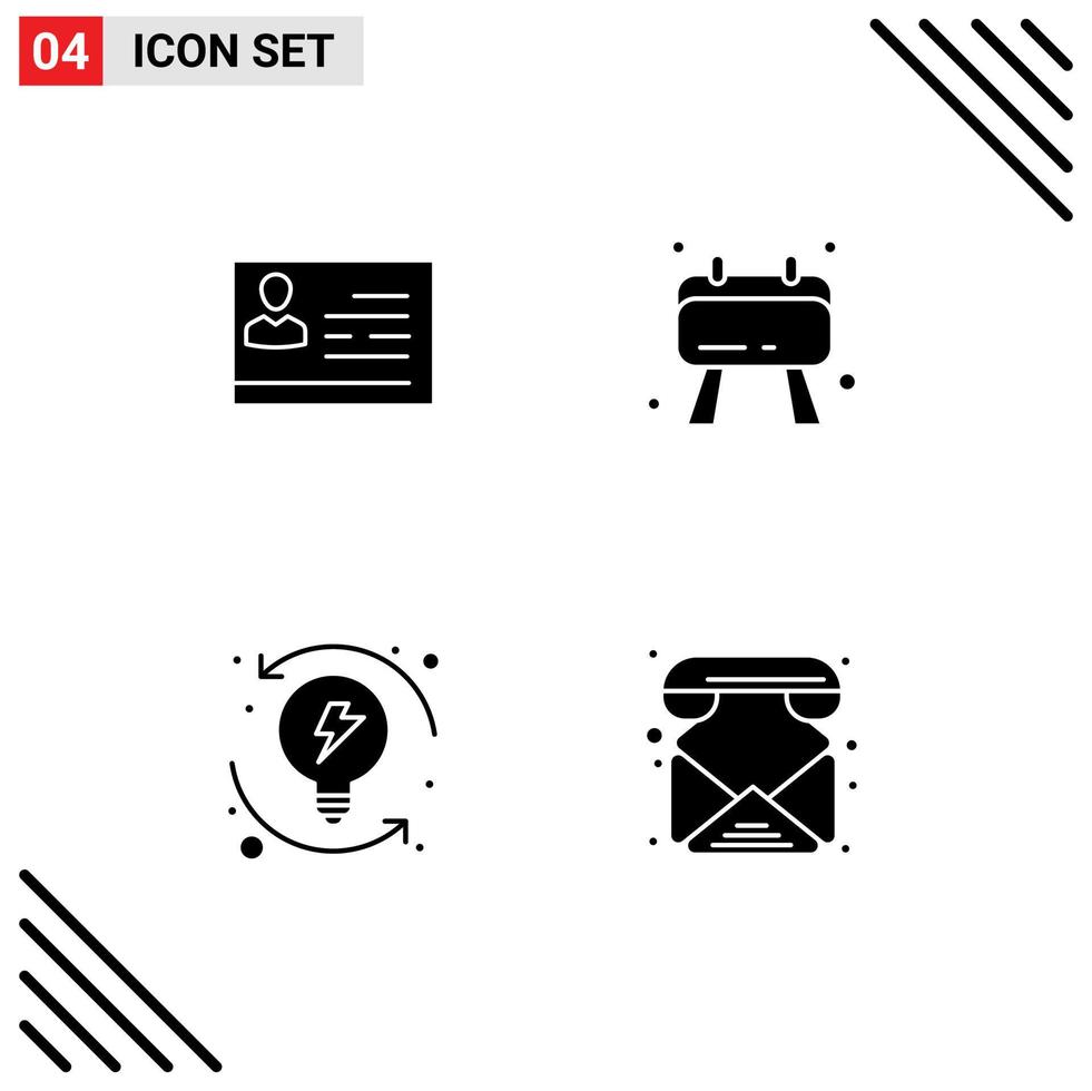 User Interface Pack of 4 Basic Solid Glyphs of license to work process identity card checklist system Editable Vector Design Elements Free Vector