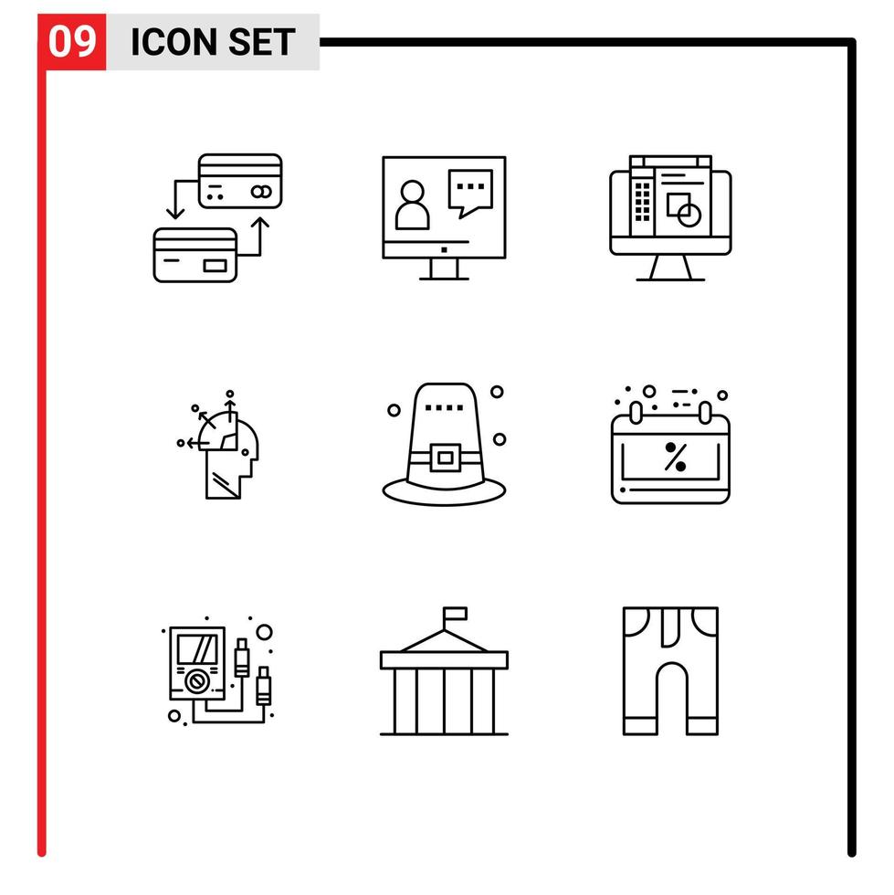 Pack of 9 creative Outlines of hat art service mind programming user Editable Vector Design Elements