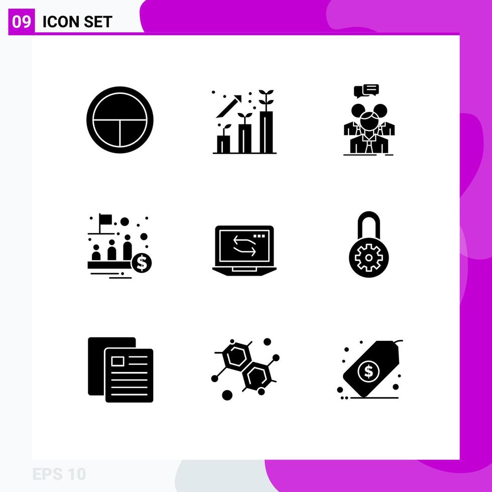 9 Universal Solid Glyphs Set for Web and Mobile Applications trade management group ipo team Editable Vector Design Elements Free Vector