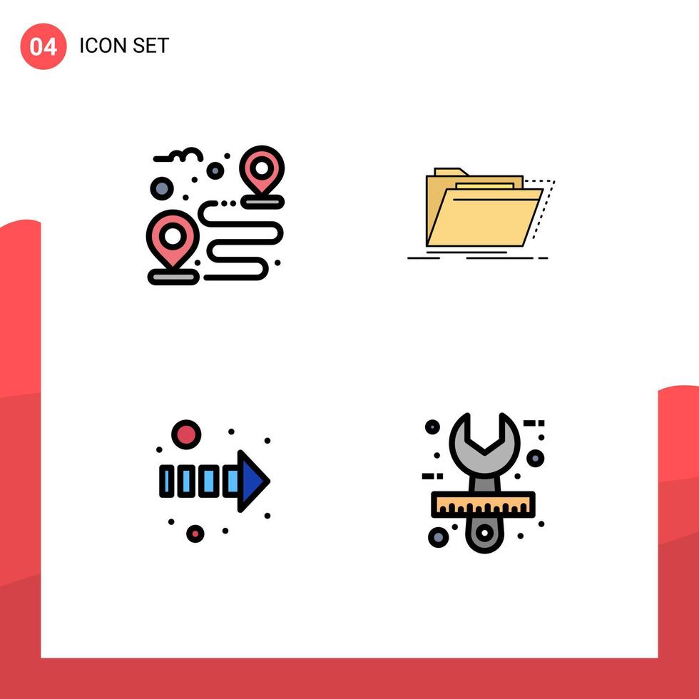 Set of 4 Modern UI Icons Symbols Signs for destination arrow path directory right Editable Vector Design Elements