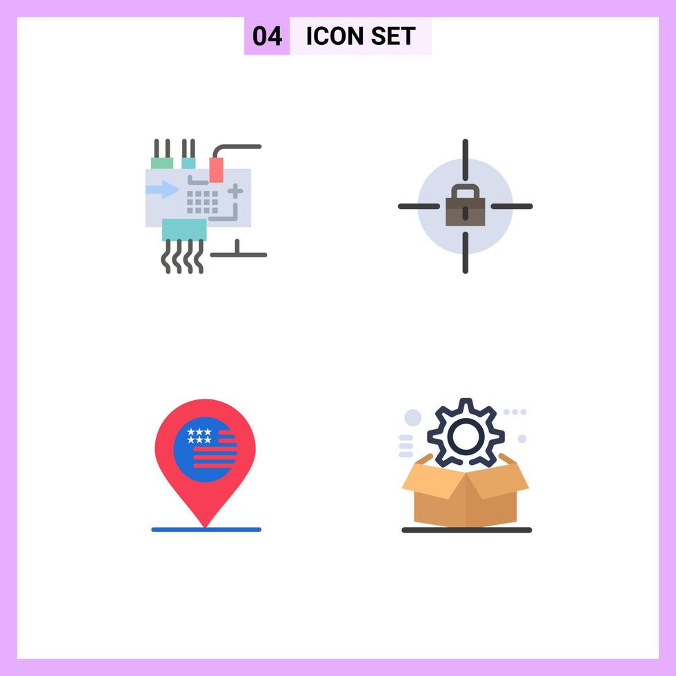 Mobile Interface Flat Icon Set of 4 Pictograms of assemble location engineering bag sign Editable Vector Design Elements