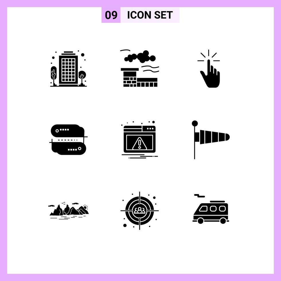 9 Thematic Vector Solid Glyphs and Editable Symbols of web network finger address tap Editable Vector Design Elements Free Vector
