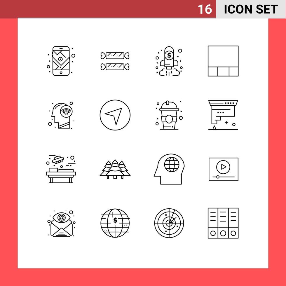 Modern Set of 16 Outlines and symbols such as mind connect analysis layout goal Editable Vector Design Elements