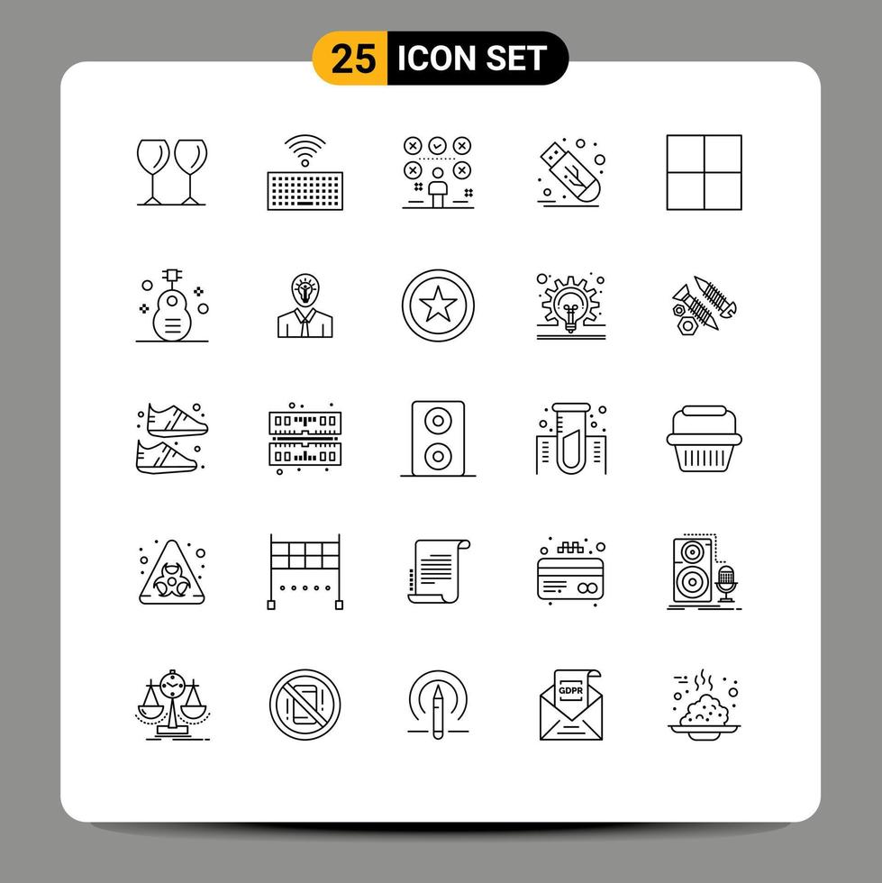 Pictogram Set of 25 Simple Lines of wireframe usb paper stick drive Editable Vector Design Elements
