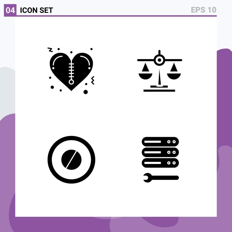 4 User Interface Solid Glyph Pack of modern Signs and Symbols of heart tablet balance scale settings Editable Vector Design Elements