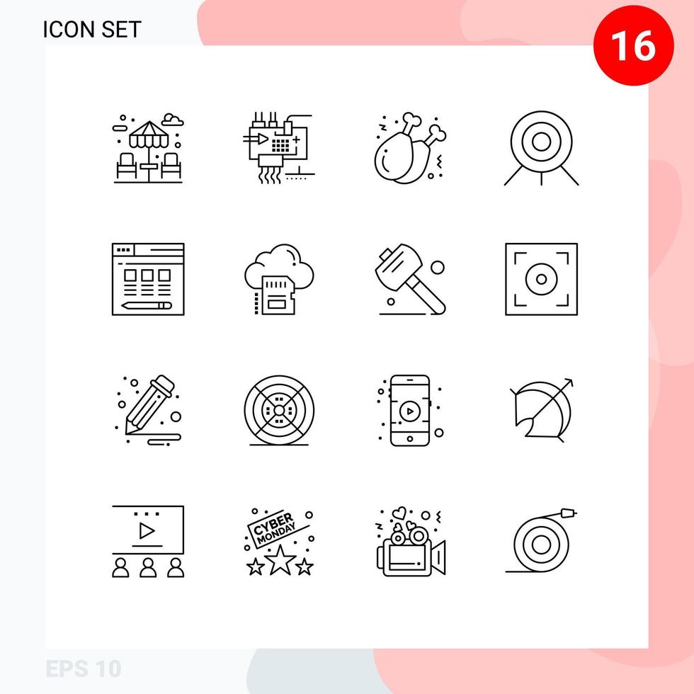 Group of 16 Outlines Signs and Symbols for hosting web chicken leg target archery Editable Vector Design Elements Free Vector