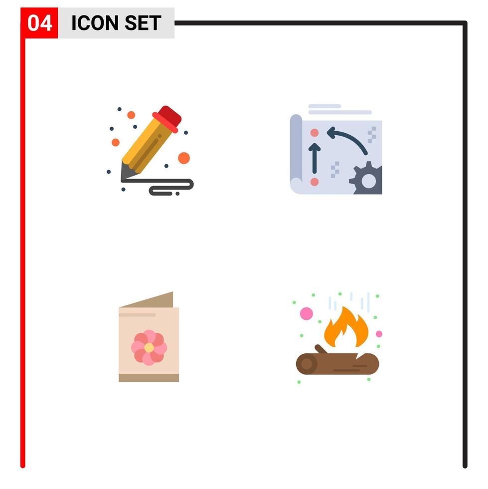 Pack of 4 Modern Flat Icons Signs and Symbols for Web Print Media such as business card app technology identification card Editable Vector Design Elements