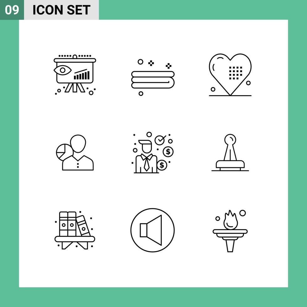 Group of 9 Outlines Signs and Symbols for person employee event data graph Editable Vector Design Elements Free Vector