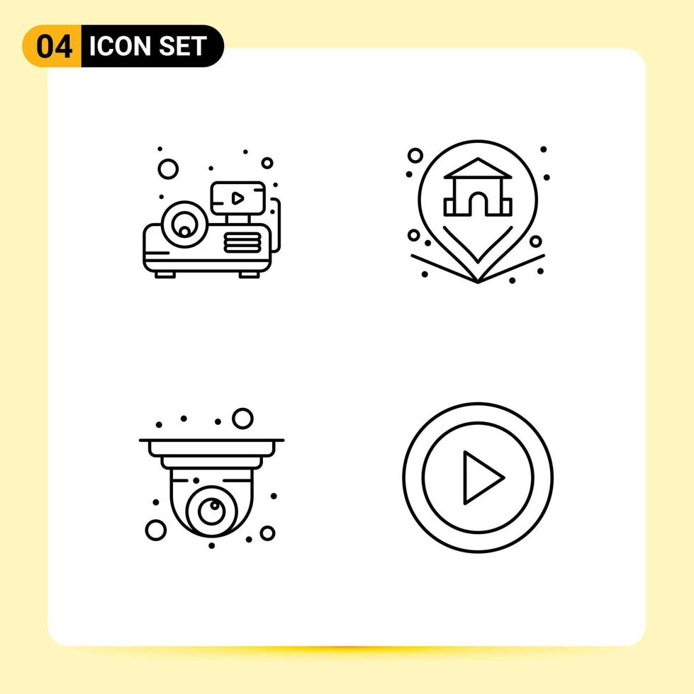 Set of 4 Modern UI Icons Symbols Signs for beamer security location home abstract Editable Vector Design Elements