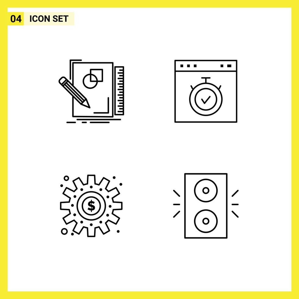 Set of 4 Modern UI Icons Symbols Signs for sketch time draw interface making Editable Vector Design Elements Free Vector