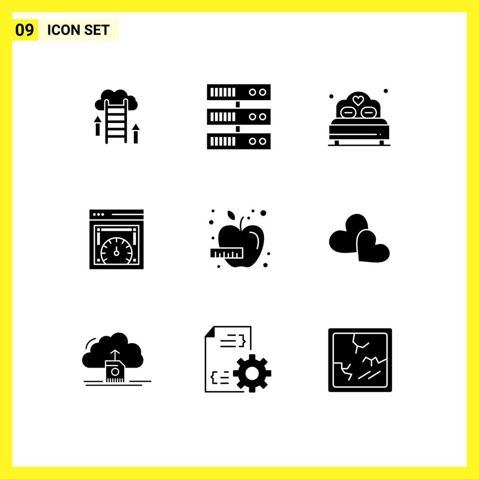 Modern Set of 9 Solid Glyphs Pictograph of diet web speed checking bed web speed dashboard Editable Vector Design Elements