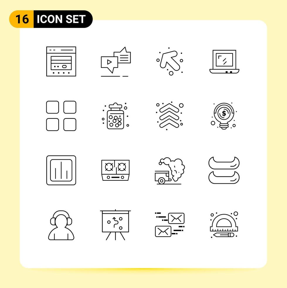 Set of 16 Vector Outlines on Grid for calculator laptop messaging design left Editable Vector Design Elements