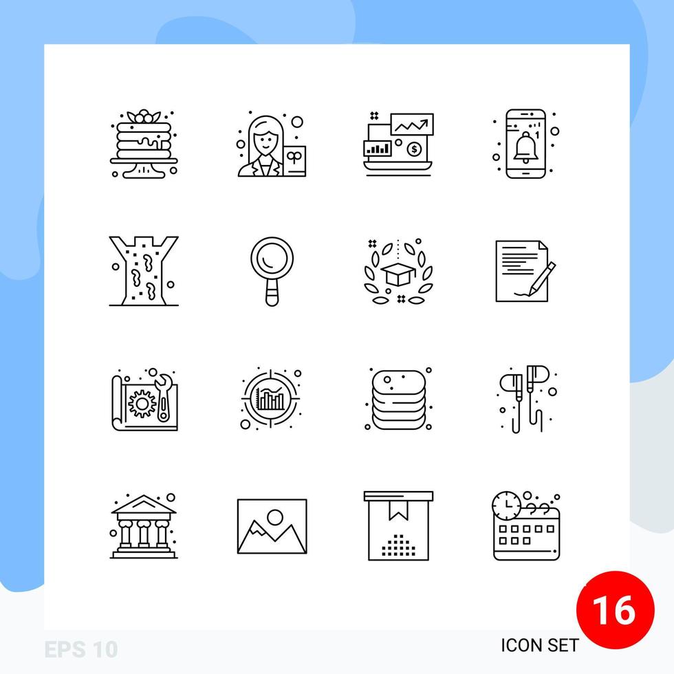 Set of 16 Vector Outlines on Grid for healthcare user dollar sign notification app Editable Vector Design Elements Free Vector