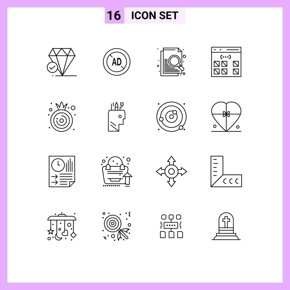 Modern Set of 16 Outlines and symbols such as onion interface document development coding Editable Vector Design Elements Free Vector