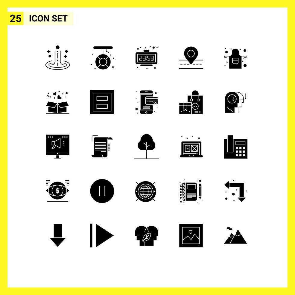 User Interface Pack of 25 Basic Solid Glyphs of map location rescue road time Editable Vector Design Elements Free Vector