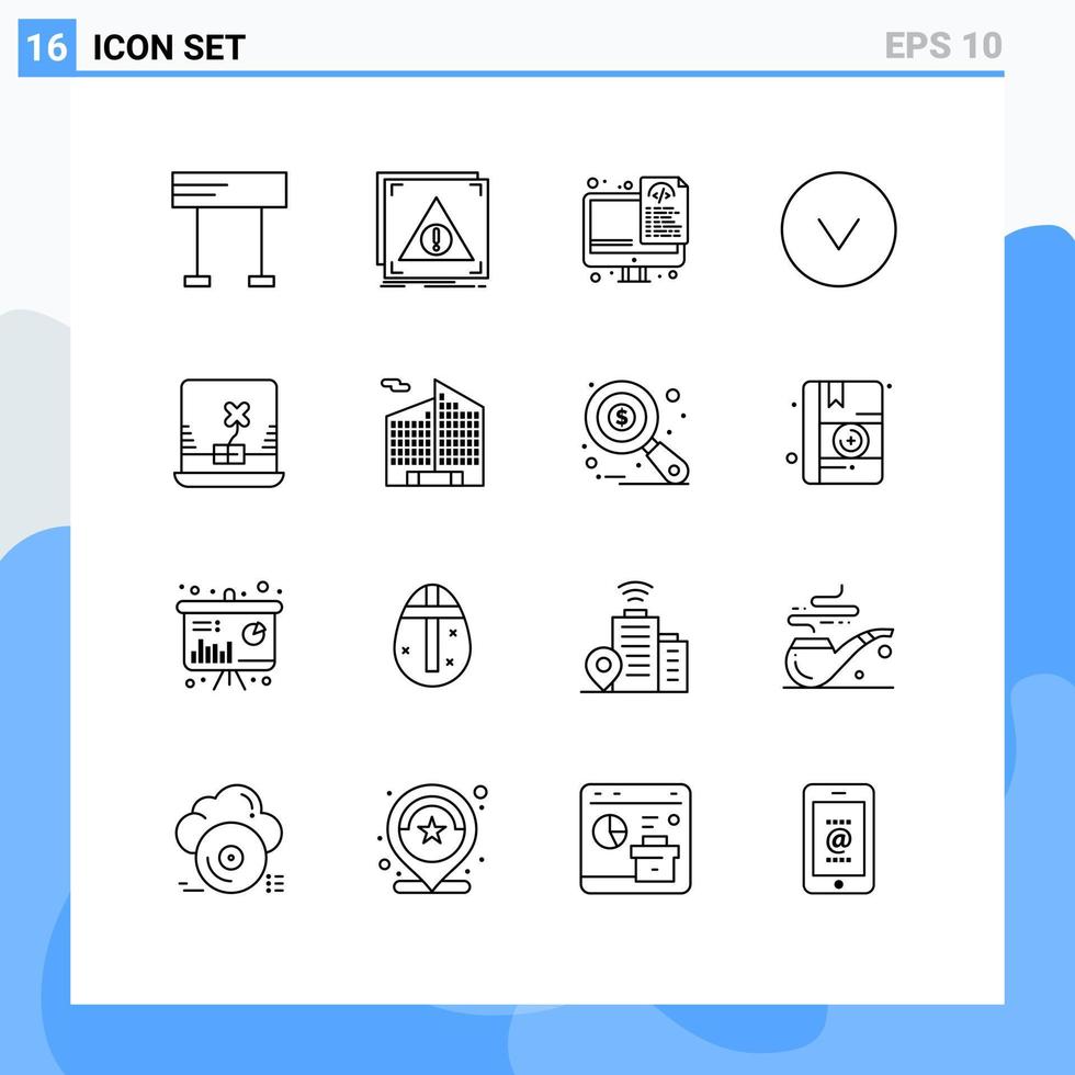 Set of 16 Vector Outlines on Grid for computer down alert circle files Editable Vector Design Elements Free Vector