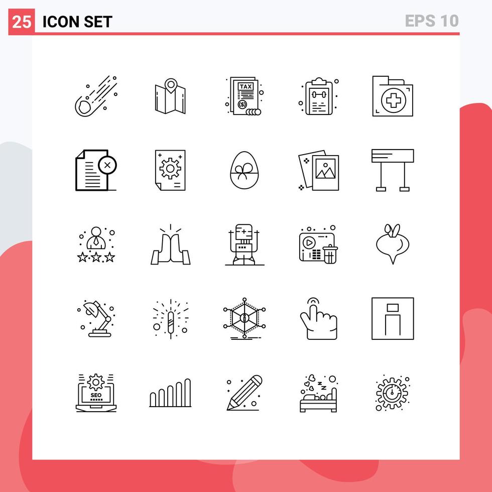 Editable Vector Line Pack of 25 Simple Lines of task mark navigation list tax Editable Vector Design Elements Free Vector