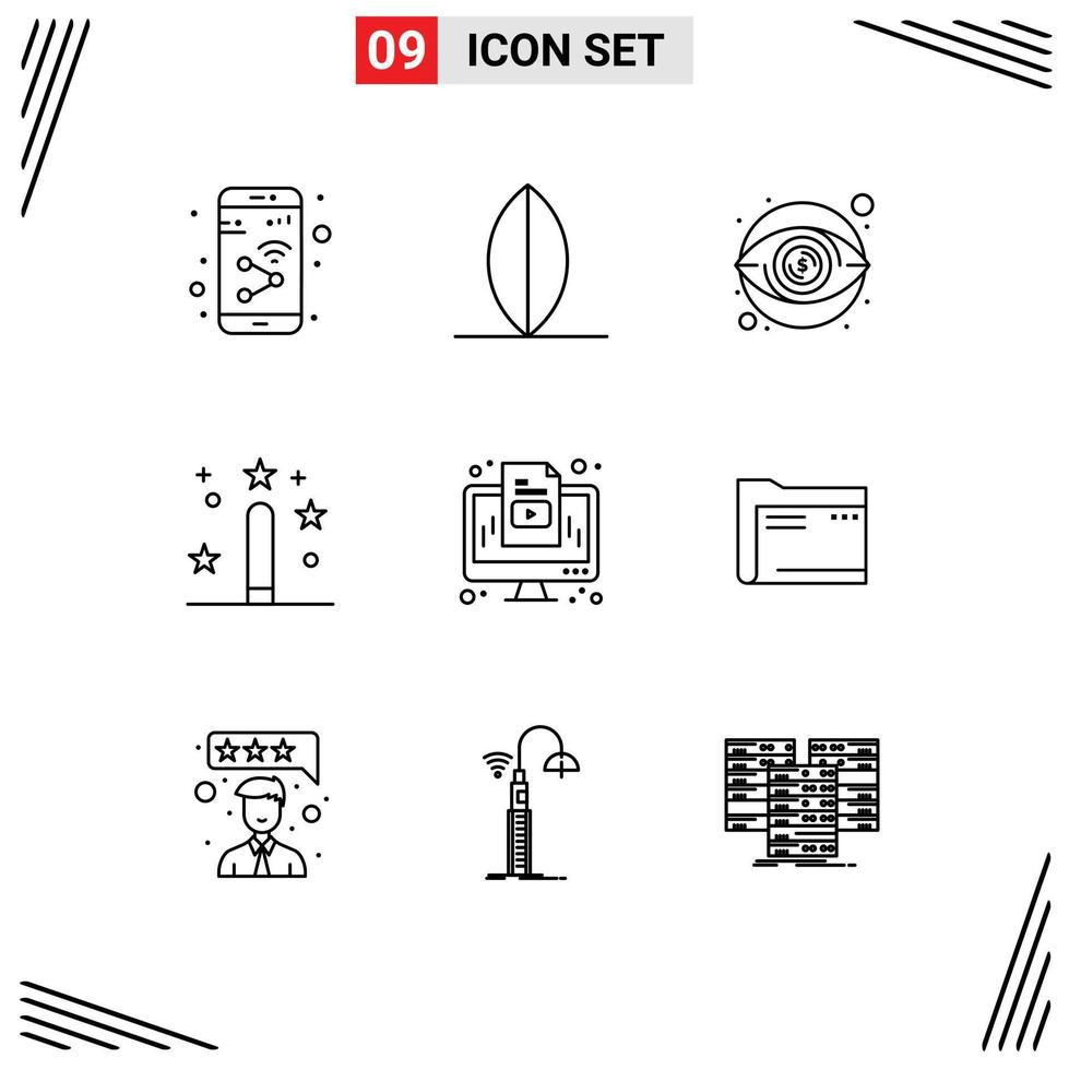 9 User Interface Outline Pack of modern Signs and Symbols of computer magic eye development coding Editable Vector Design Elements