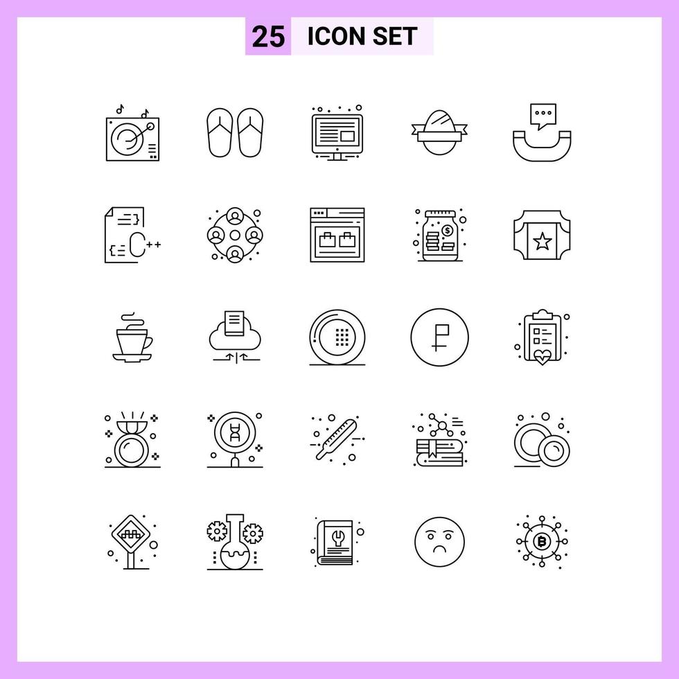 25 User Interface Line Pack of modern Signs and Symbols of coding sms screen phone holidays Editable Vector Design Elements