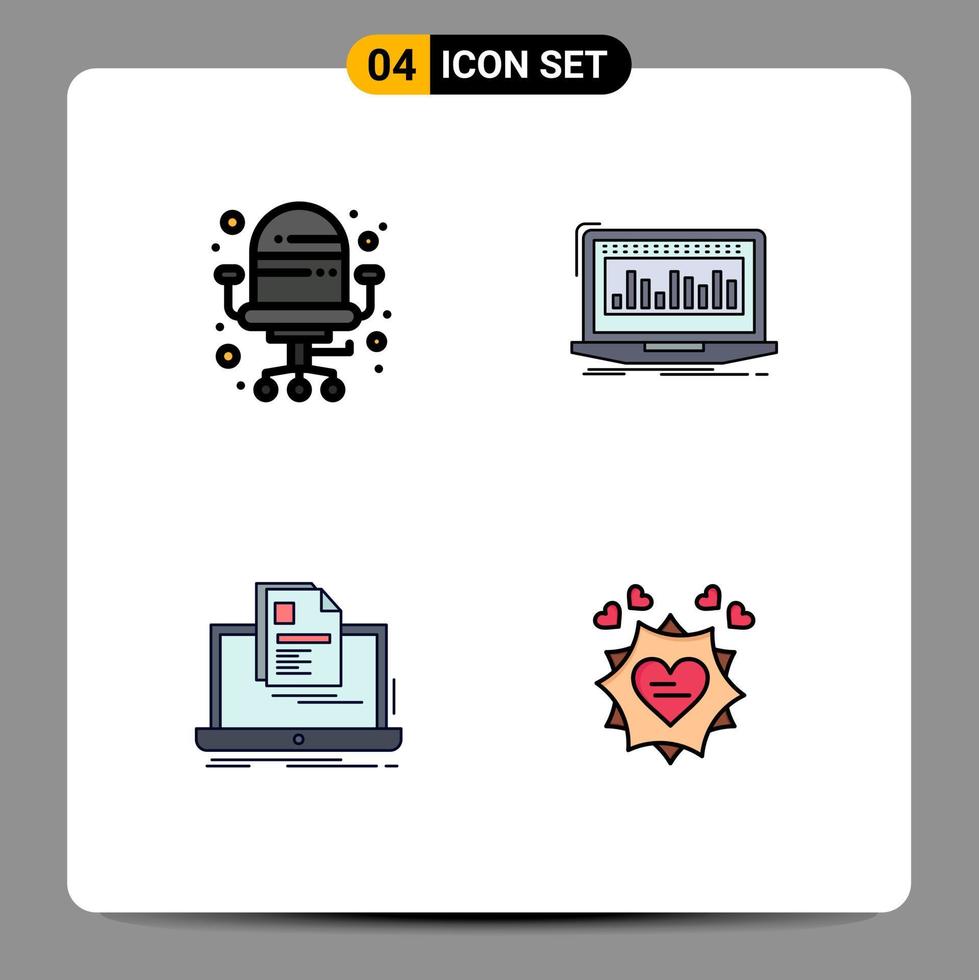 Set of 4 Modern UI Icons Symbols Signs for chair laptop data monitoring print Editable Vector Design Elements