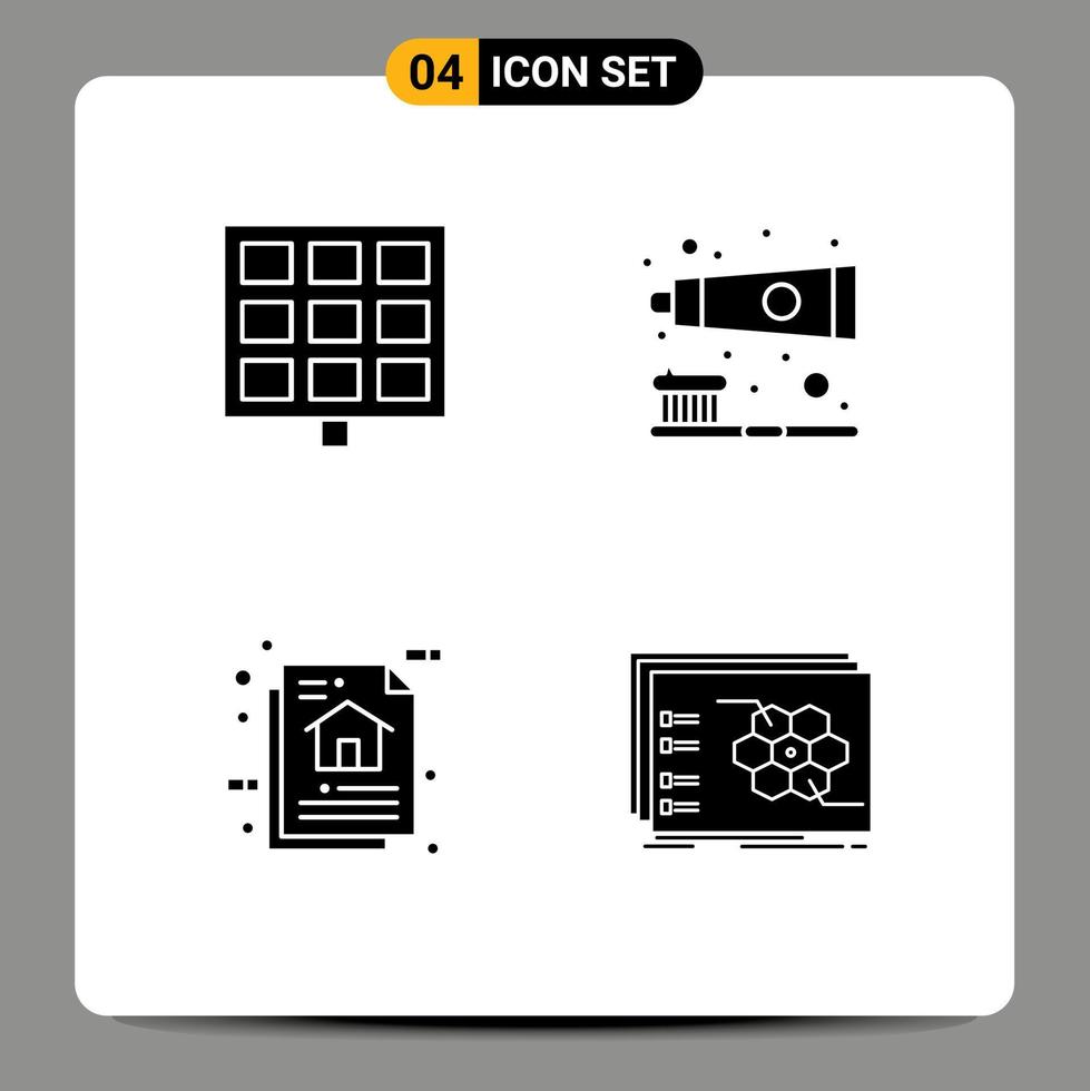 Modern Set of 4 Solid Glyphs and symbols such as panel data architecture brush teeth care program algorithm Editable Vector Design Elements