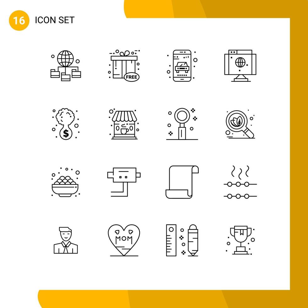 16 Outline concept for Websites Mobile and Apps development technology delivery network computer Editable Vector Design Elements Free Vector