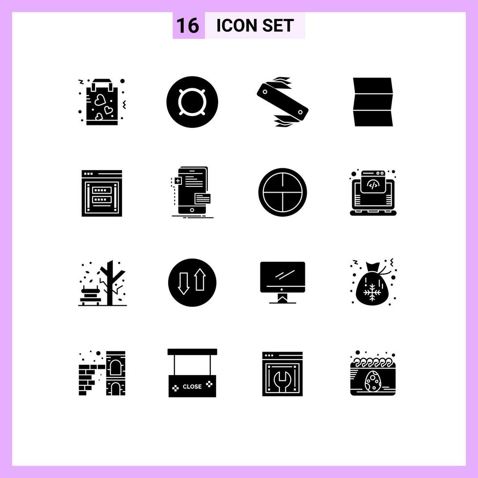 16 Universal Solid Glyphs Set for Web and Mobile Applications fraudulent map generic location swiss Editable Vector Design Elements Free Vector