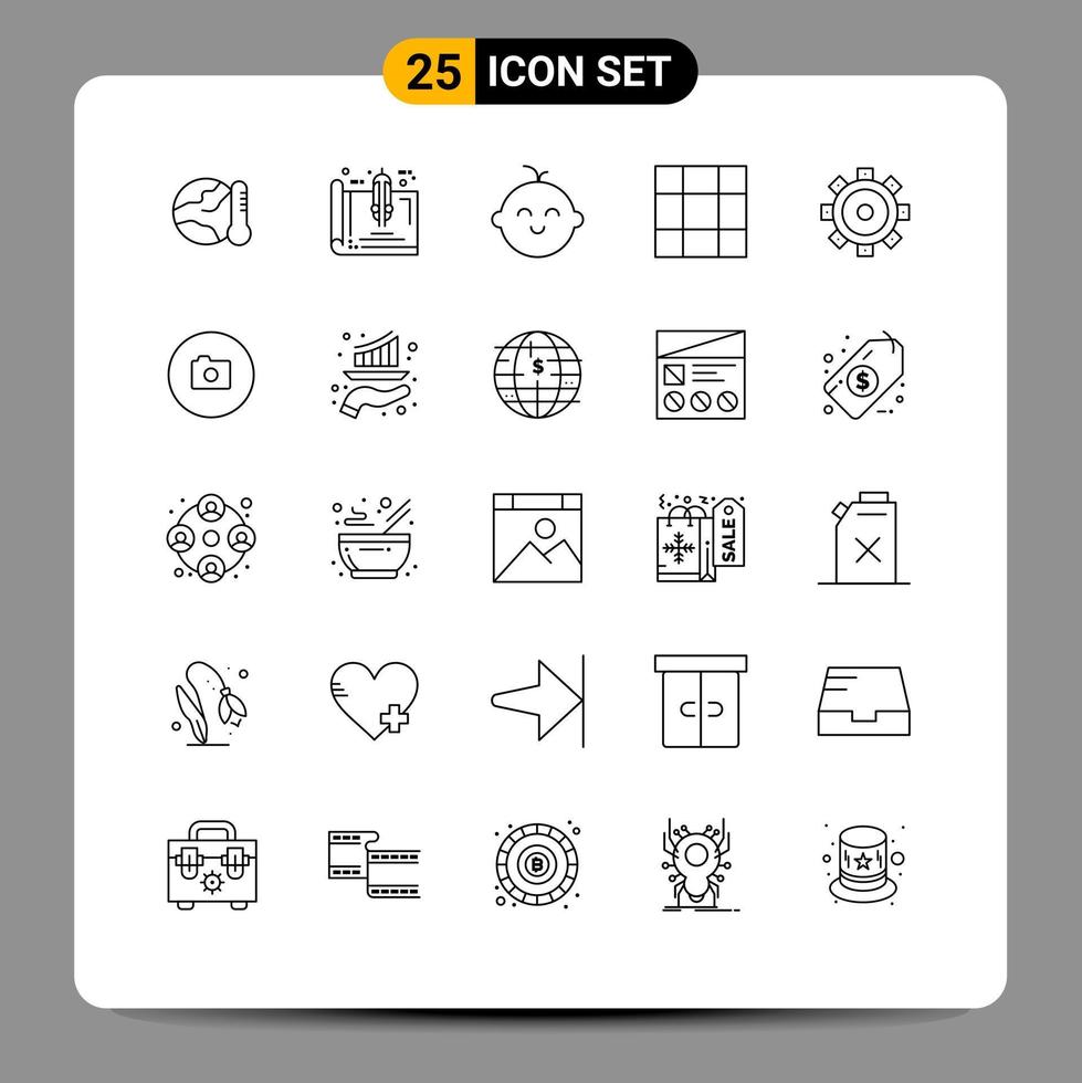 Pack of 25 Modern Lines Signs and Symbols for Web Print Media such as setting construction home layout newborn Editable Vector Design Elements