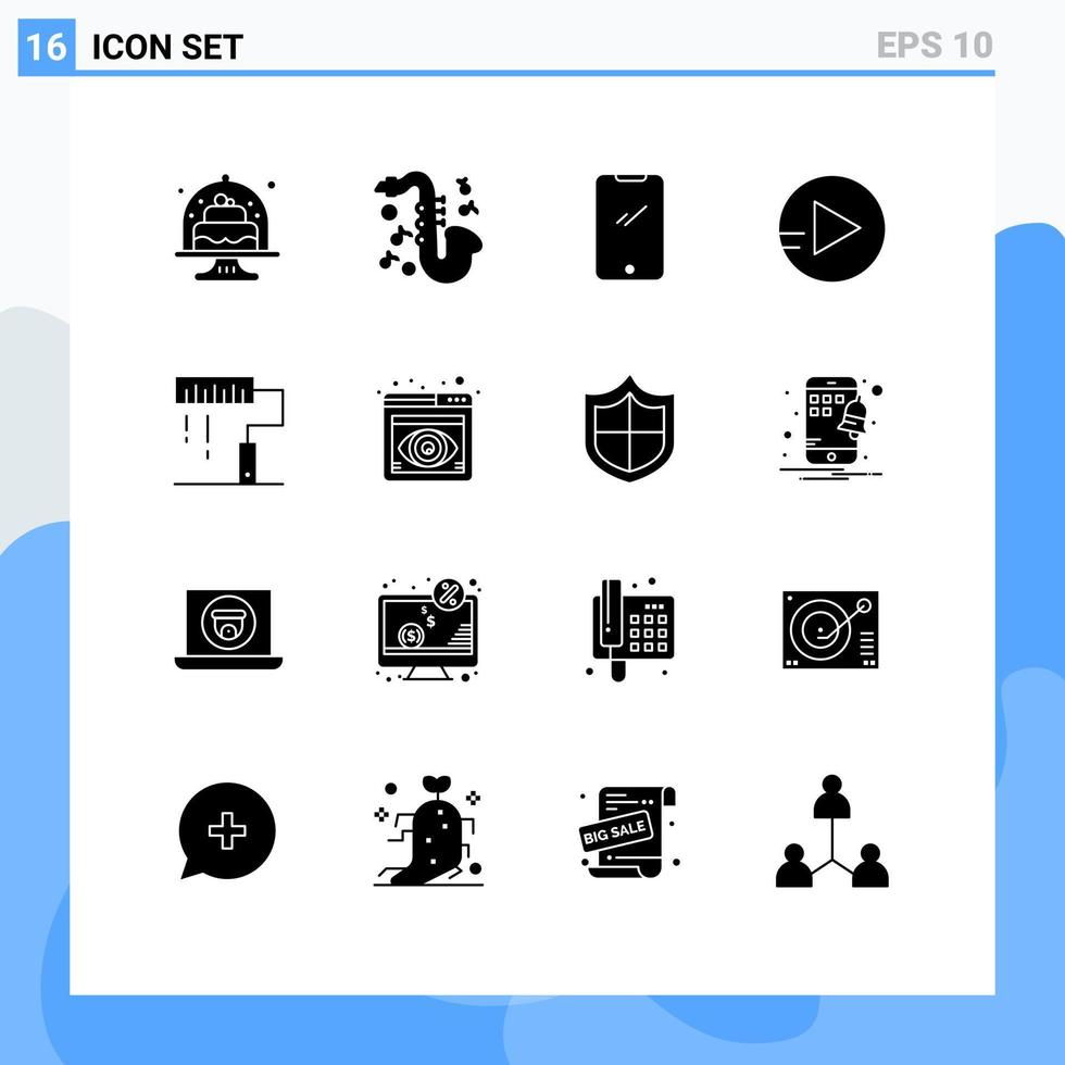 Mobile Interface Solid Glyph Set of 16 Pictograms of development coding phone play iphone Editable Vector Design Elements