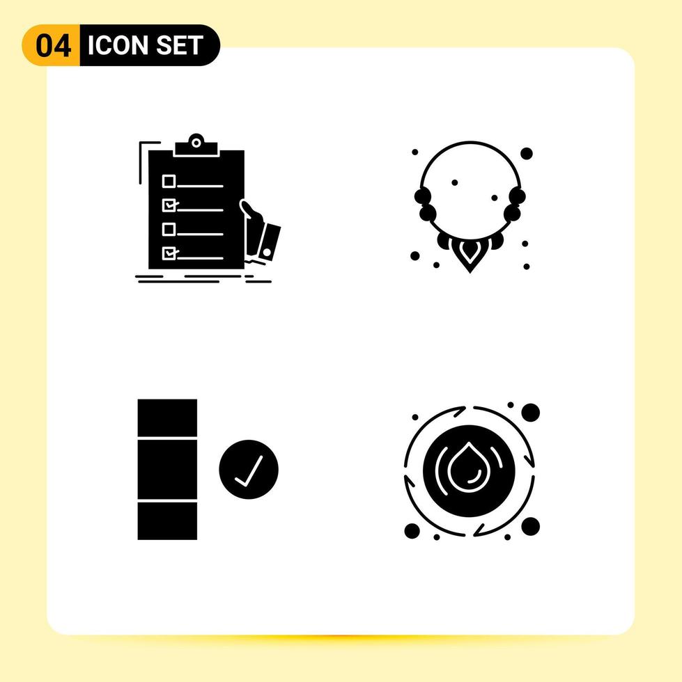 Pack of 4 Modern Solid Glyphs Signs and Symbols for Web Print Media such as checklist check list gem data Editable Vector Design Elements