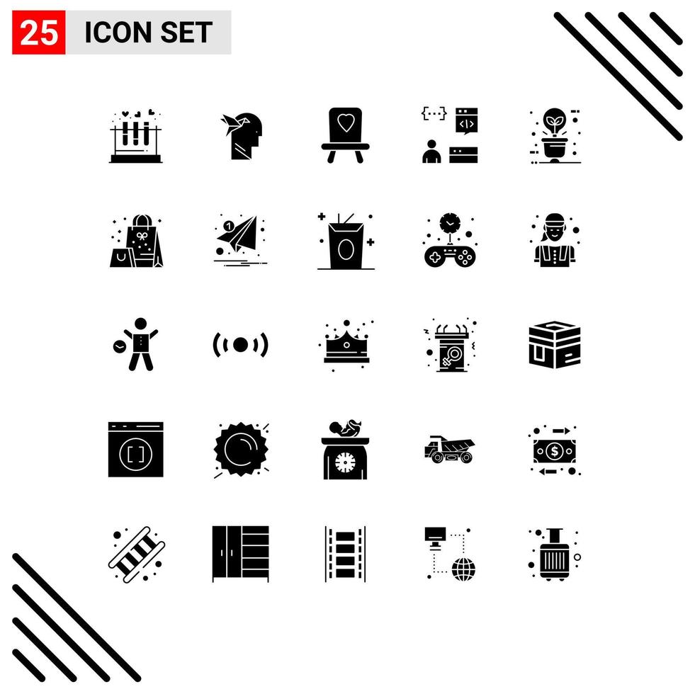 25 User Interface Solid Glyph Pack of modern Signs and Symbols of bulb programmer brian development coding Editable Vector Design Elements
