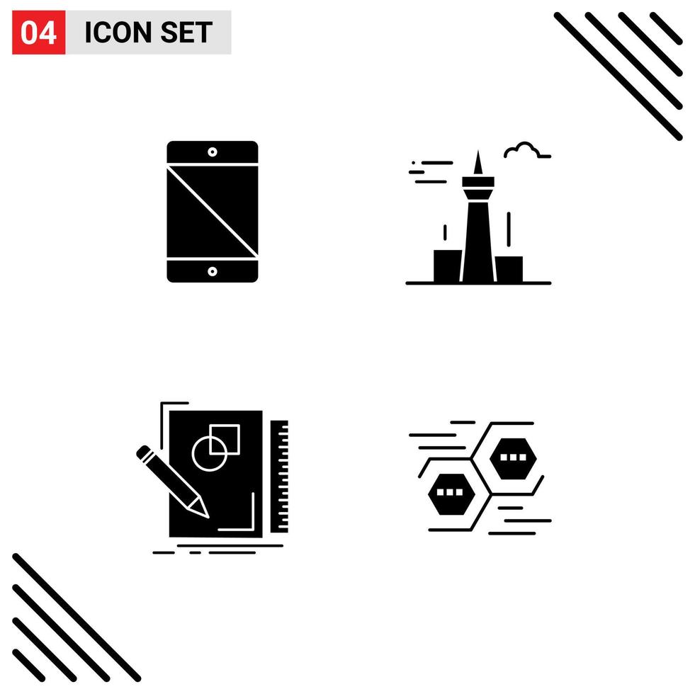 Modern Set of 4 Solid Glyphs and symbols such as allowed landmark pc buildings sketching Editable Vector Design Elements