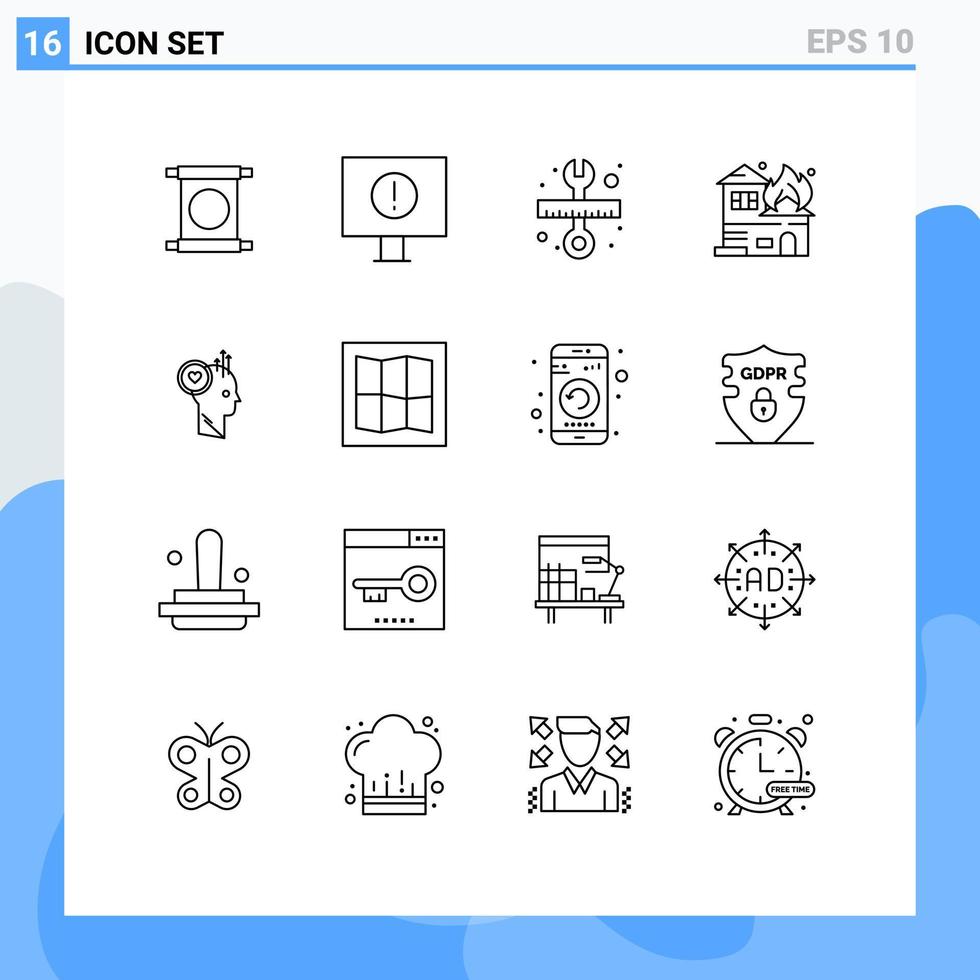 Set of 16 Vector Outlines on Grid for staff user tool house burning Editable Vector Design Elements