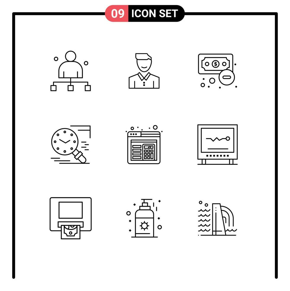9 Universal Outlines Set for Web and Mobile Applications magnifier outcome happy finance business Editable Vector Design Elements Free Vector
