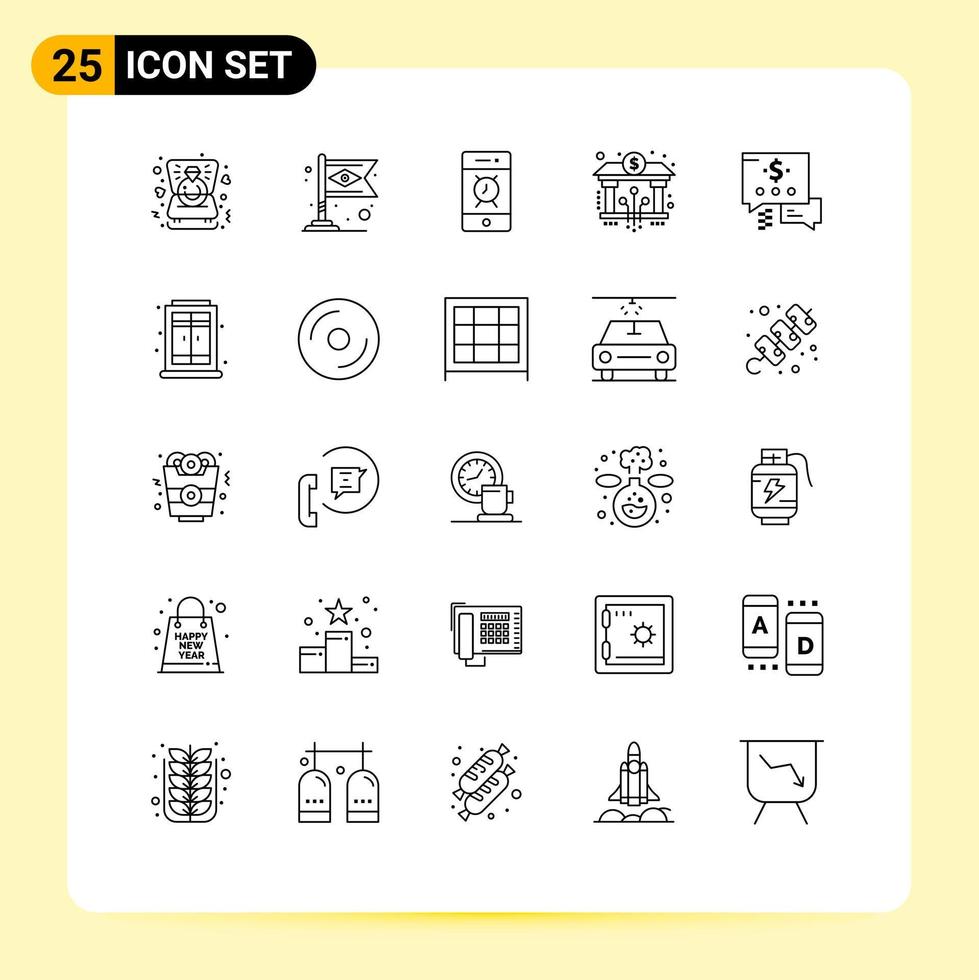 Set of 25 Vector Lines on Grid for chat crypto alarm blockchain bank Editable Vector Design Elements