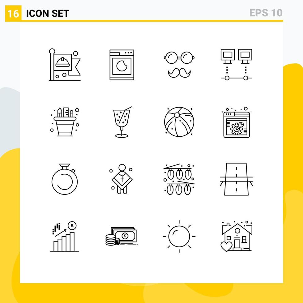 Group of 16 Outlines Signs and Symbols for business net avatar devices computers Editable Vector Design Elements