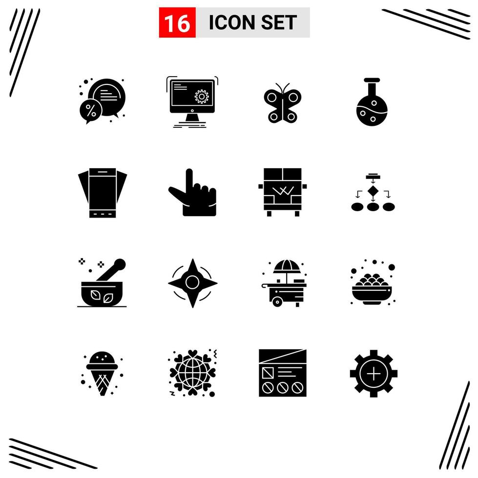 User Interface Pack of 16 Basic Solid Glyphs of device experiment process boiling flask insect Editable Vector Design Elements Free Vector