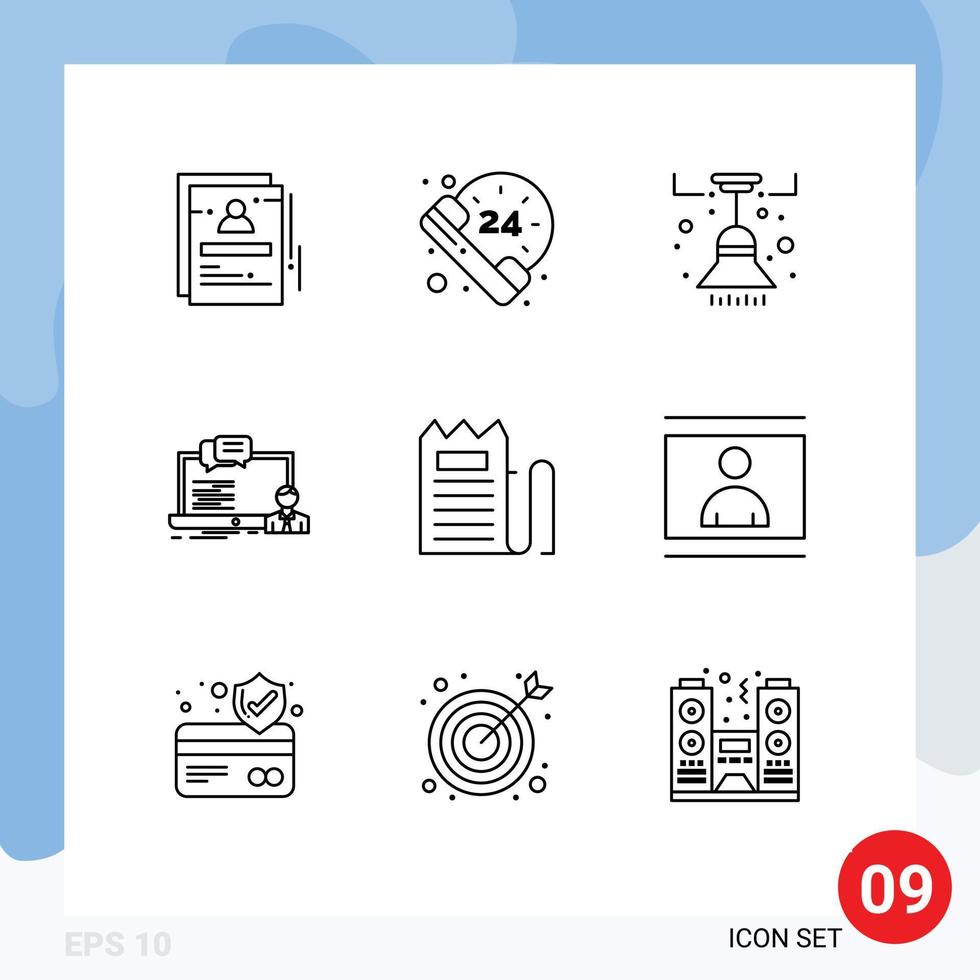 Set of 9 Modern UI Icons Symbols Signs for checkout computer chandelier online training Editable Vector Design Elements Free Vector