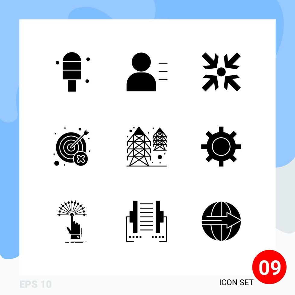 Set of 9 Vector Solid Glyphs on Grid for setting tower fail power wrong Editable Vector Design Elements Free Vector