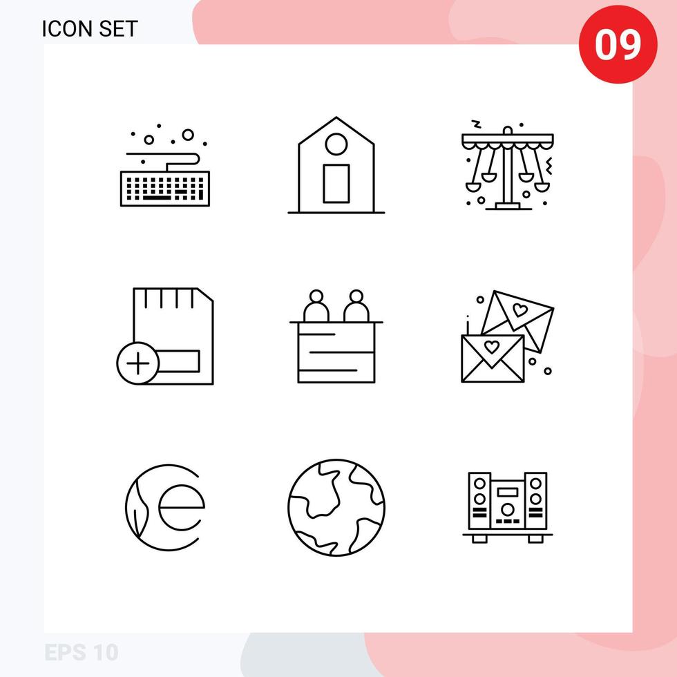 9 Universal Outlines Set for Web and Mobile Applications interview hardware play devices card Editable Vector Design Elements