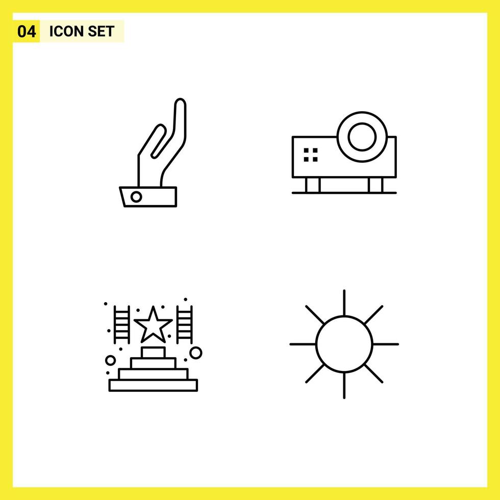 4 User Interface Line Pack of modern Signs and Symbols of alms success multimedia slide projector circle Editable Vector Design Elements Free Vector