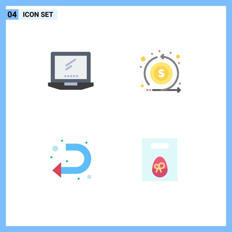 Universal Icon Symbols Group of 4 Modern Flat Icons of computer arrow imac flow u turn Editable Vector Design Elements