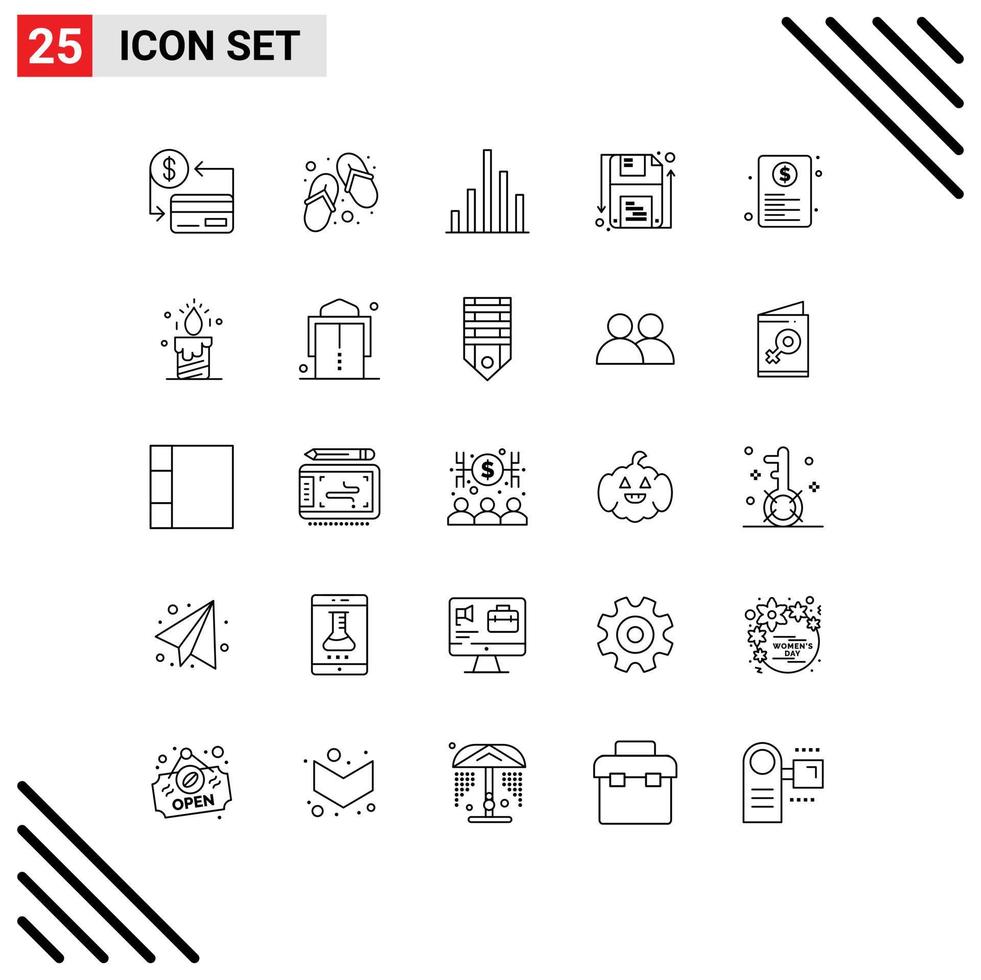 Universal Icon Symbols Group of 25 Modern Lines of file shape spa save disk Editable Vector Design Elements