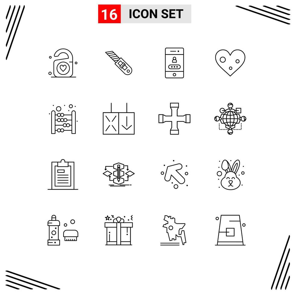 16 User Interface Outline Pack of modern Signs and Symbols of calculating favorite access like heart Editable Vector Design Elements