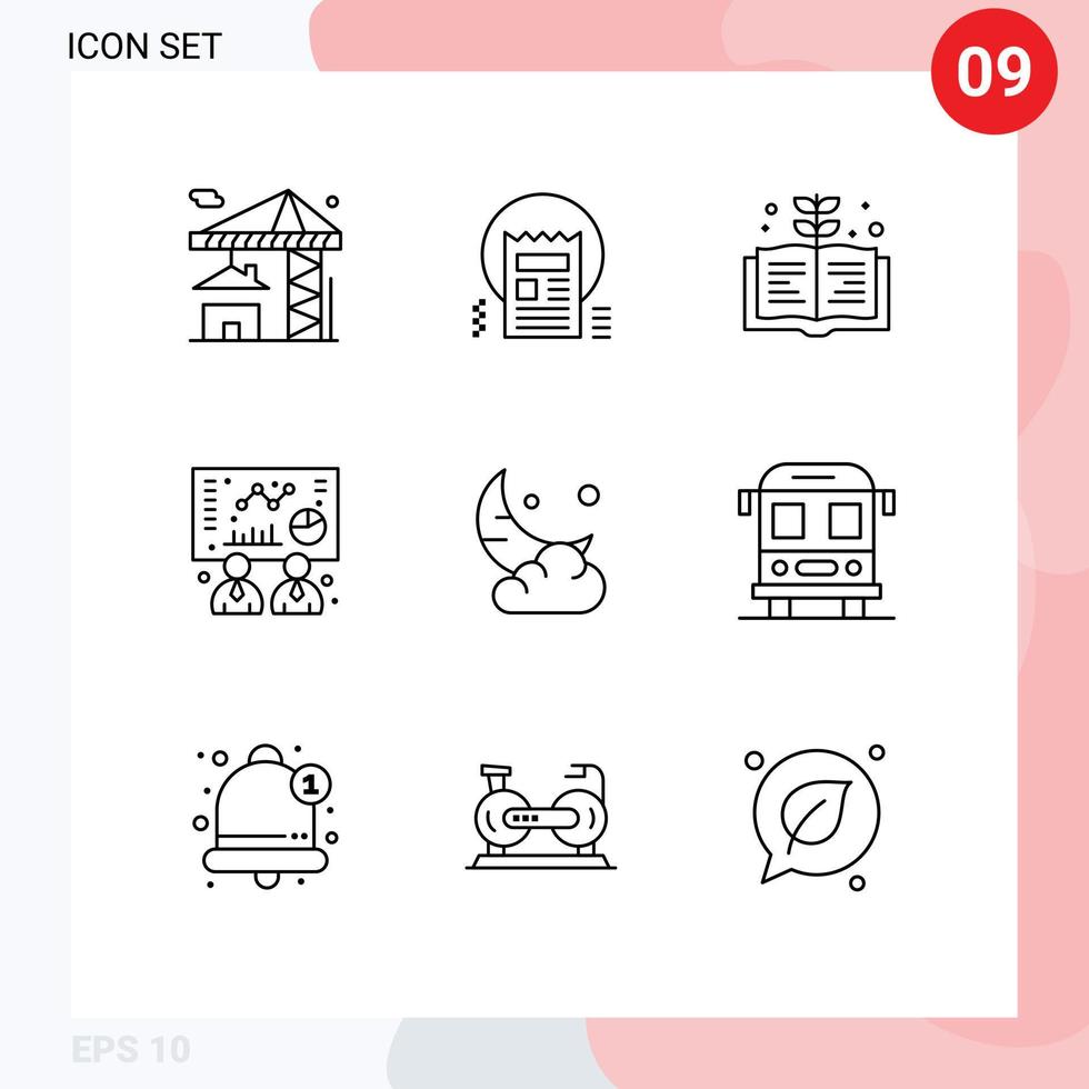 Outline Pack of 9 Universal Symbols of ramadan moon web graph business Editable Vector Design Elements
