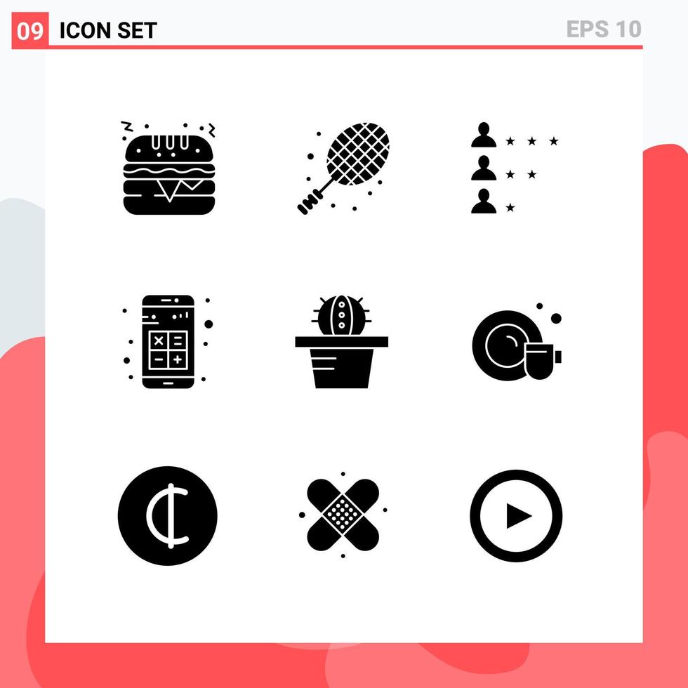 Mobile Interface Solid Glyph Set of 9 Pictograms of pot interaction job calculator app Editable Vector Design Elements