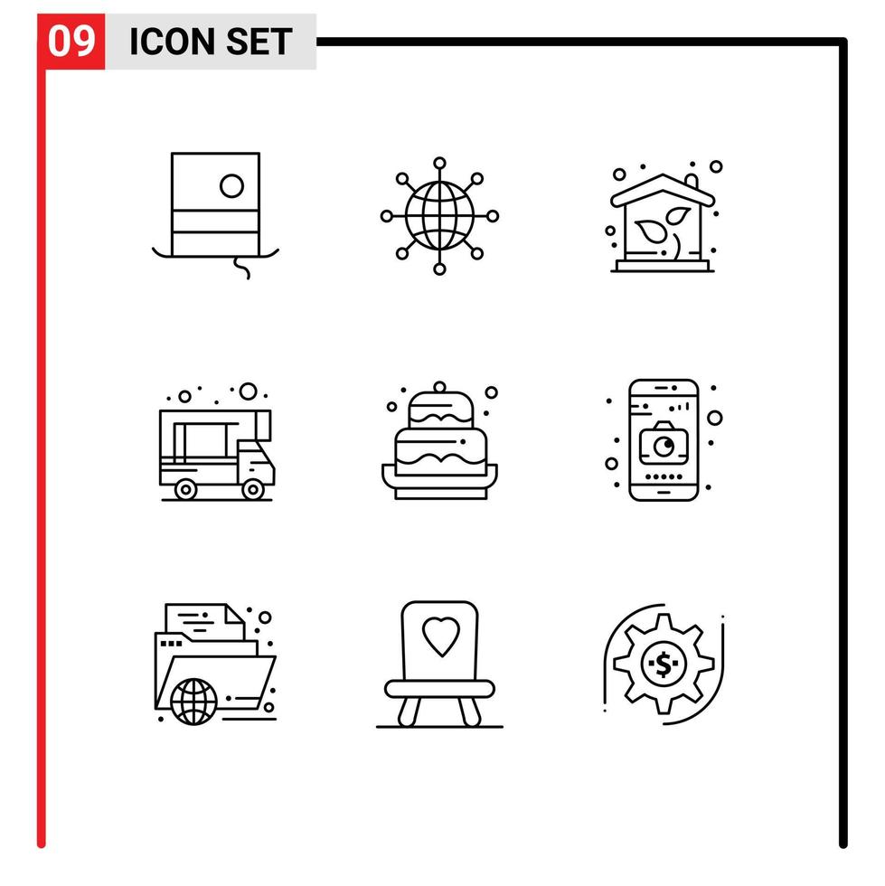 Pictogram Set of 9 Simple Outlines of cake doodle web caravan property Editable Vector Design Elements