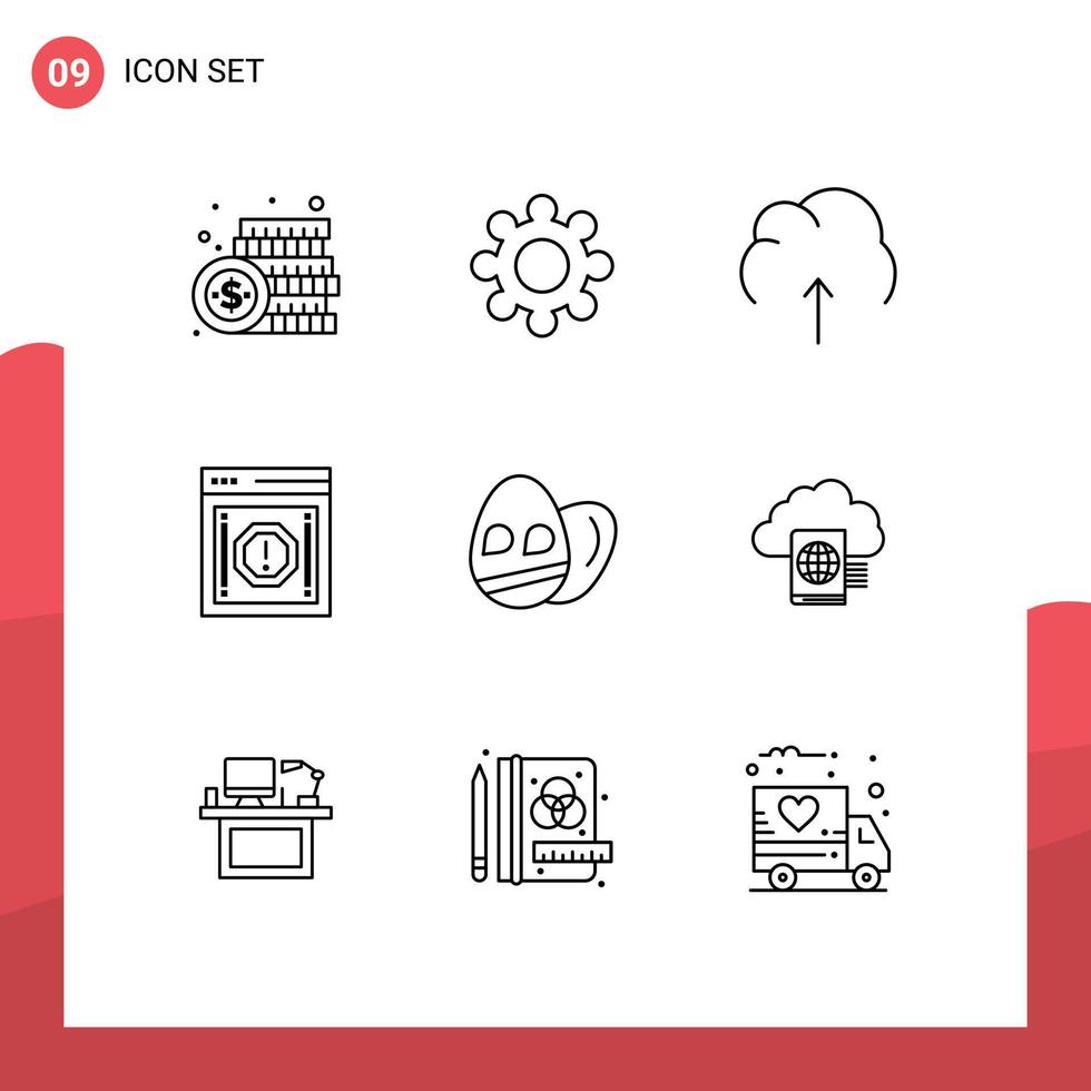 Pictogram Set of 9 Simple Outlines of warning message cloud internet storage Editable Vector Design Elements