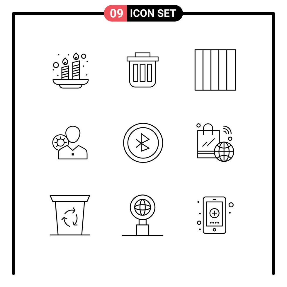Set of 9 Modern UI Icons Symbols Signs for personal gear container efficiency layout Editable Vector Design Elements