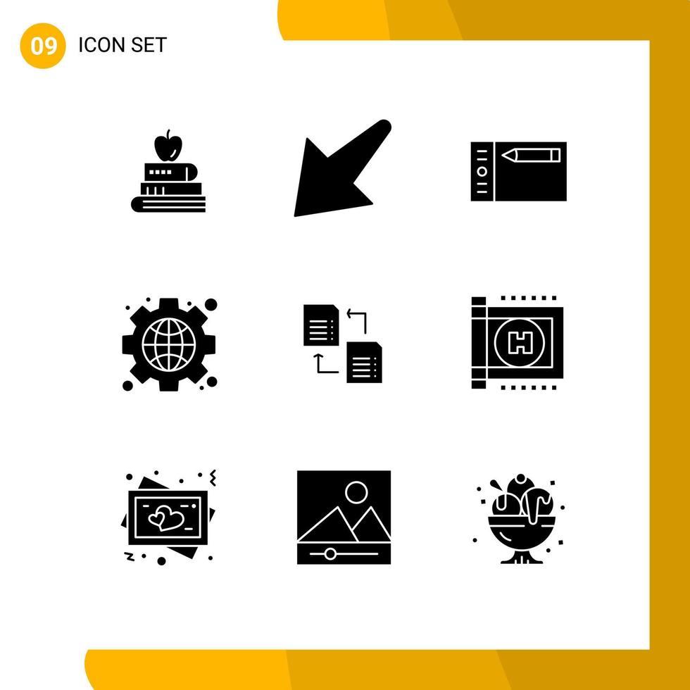 Stock Vector Icon Pack of 9 Line Signs and Symbols for share data draw globe interface Editable Vector Design Elements